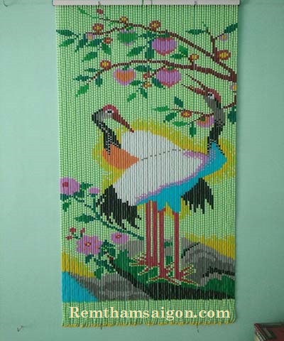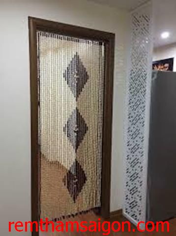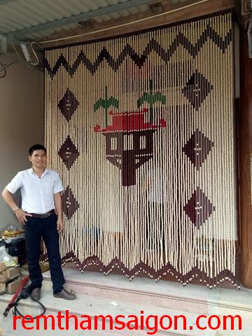 Rèm thảm Sài Gòn thiết kế kiểu Rèm hạt gỗ kết tranh treo cho cửa thông phòng, khi treo bộ rèm này cửa thông phòng mở bình thường nhưng ánh mắt đã bị cản trở bởi bức mành hạt nhựa này. Nếu nhìn từ bên ngoài vào thì trông giống như một bức tranh phong thuỷ tuyệt đẹp